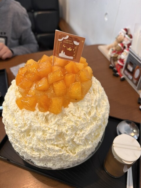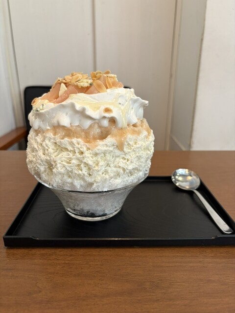 氷本体にも桃ゴロゴロ入ってるのに、さらに別添えで桃シロップ付いてるのも嬉しいポイント