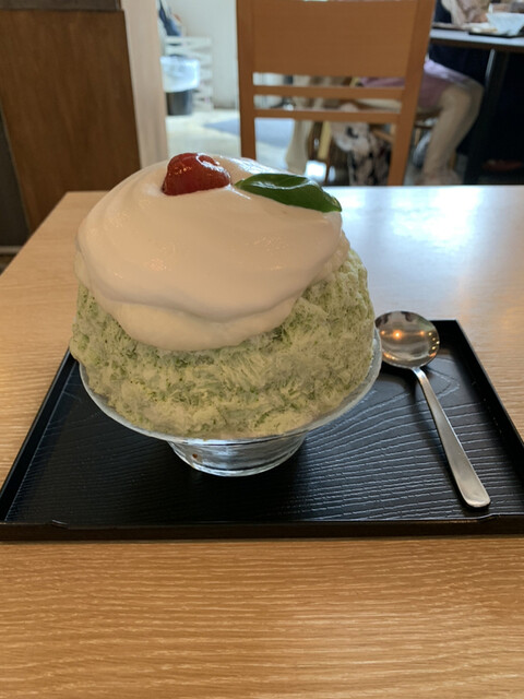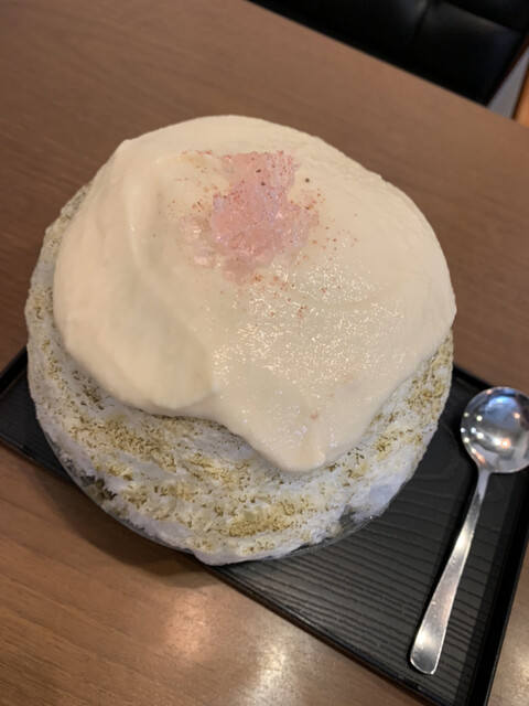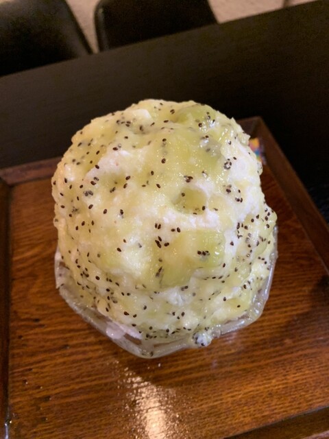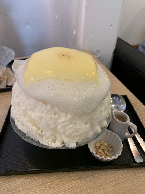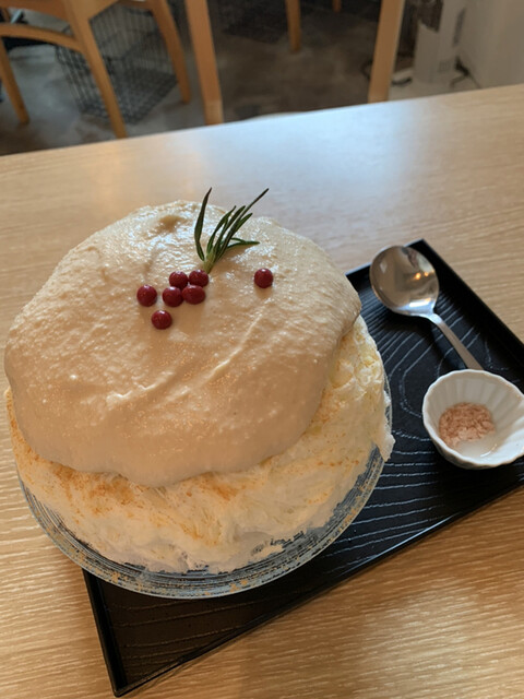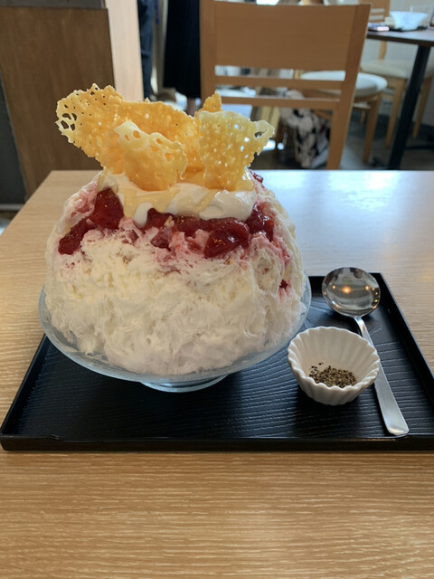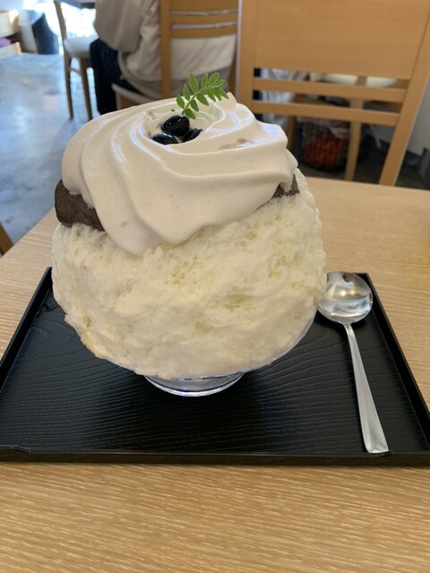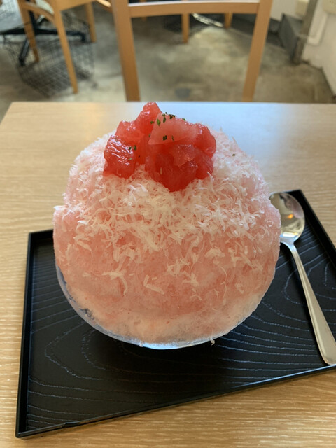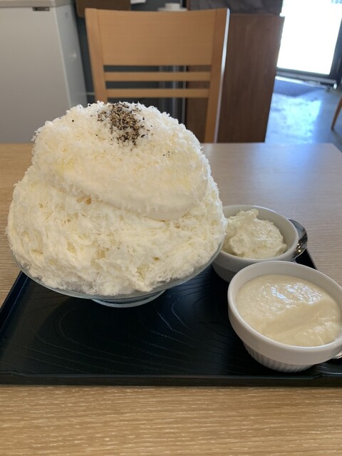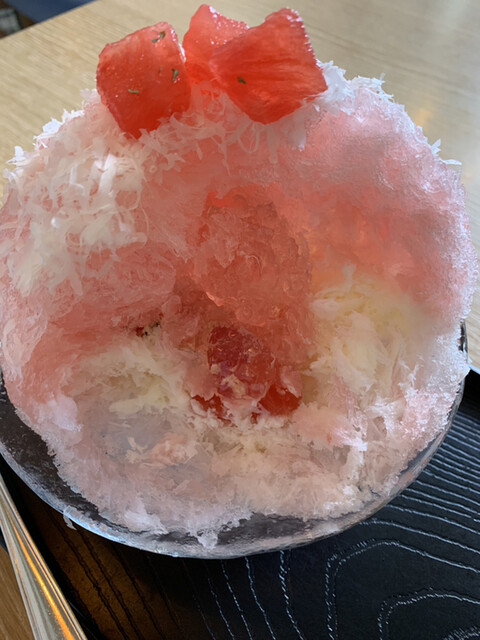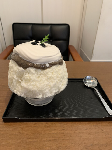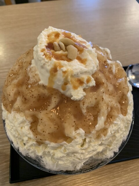河内晩柑のかき氷が塩気なかったから、しょっぱい味噌クリームと食べてちょうどよかった。