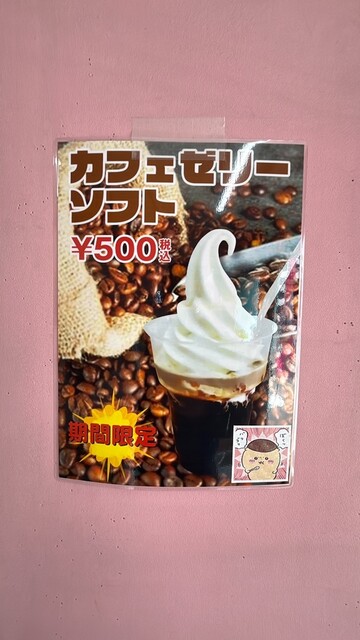 あまりにも食べたすぎて、入店し店の扉を閉め切る前に元気よくカフェゼリーソフトを注文