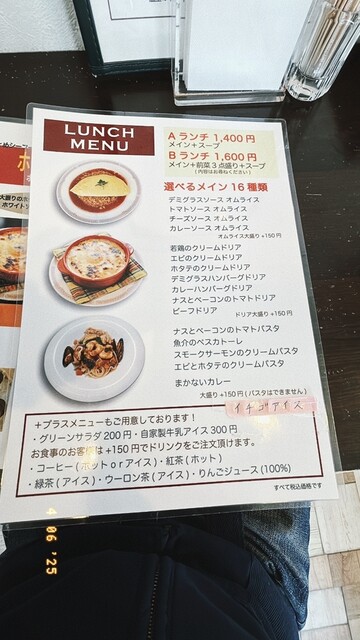 席に案内され早速メニューを確認しカレーソース オムライスを大盛で注文