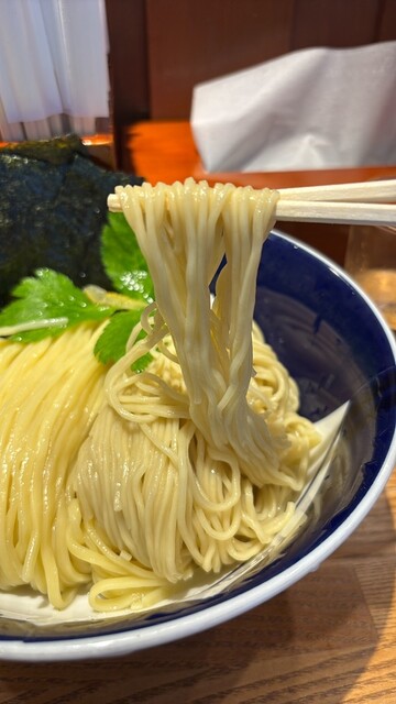 個人的にはつけ汁の絡み方も良く細麺の方が好きかな