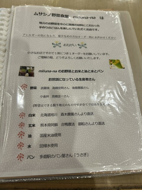 今日のお昼は、武蔵境駅南口から徒歩10分ぐらいの、住宅街の中にある野菜料理の「ミルナーナ」さんで。