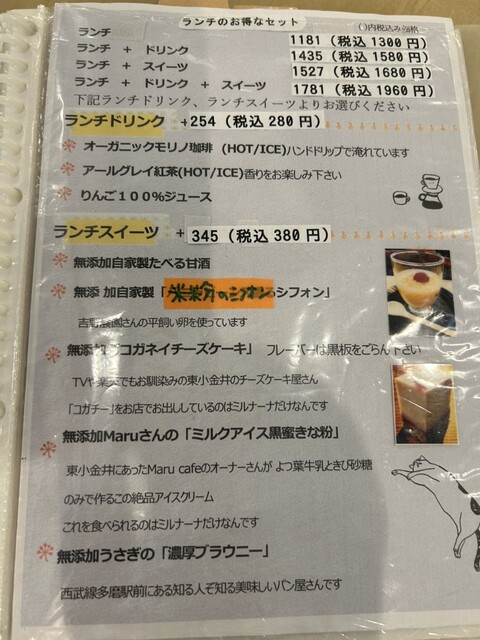 今日のお昼は、武蔵境駅南口から少し歩いたところにある野菜料理の「ミルナーナ」さんへ。