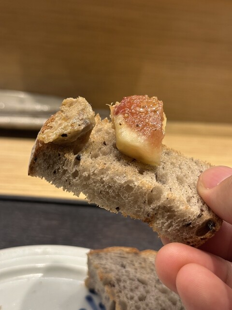 ■レバーパテ+パン+イチジク+塩漬け胡椒