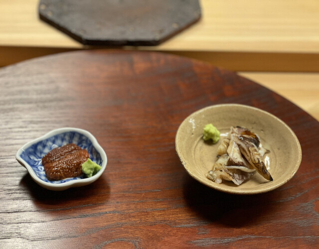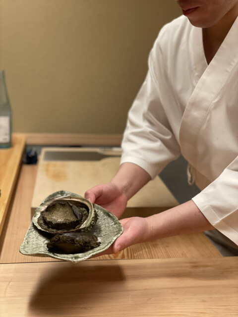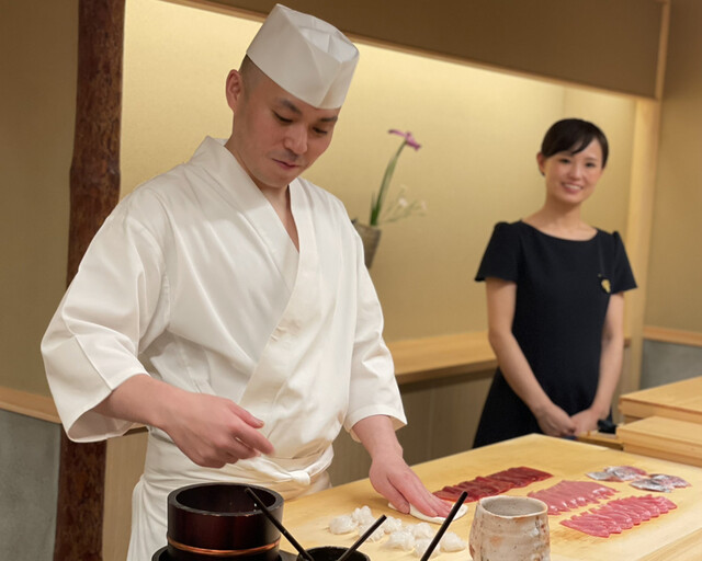 暖簾をくくると、そこはゆったりとした贅沢な空間。付け場には親方とソムリエールの奥様。もう最高じゃないですかっ♡