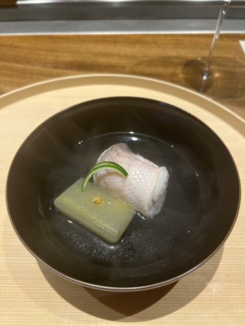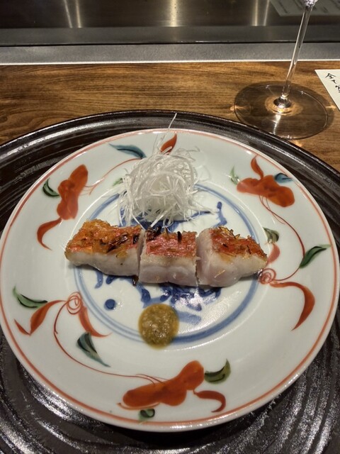 前日になかむらさんに行っていたので、出てきた魚は同じでやっぱりいい魚はこういうお店に行くんだなーと思いました。その魚ですが、どれも抜群においしかったです!カマスは脂があり溶ける食感、甘鯛はブリンブリンで旨みが強く、金目鯛はしっとり火入れされていて、圧倒的でした!!