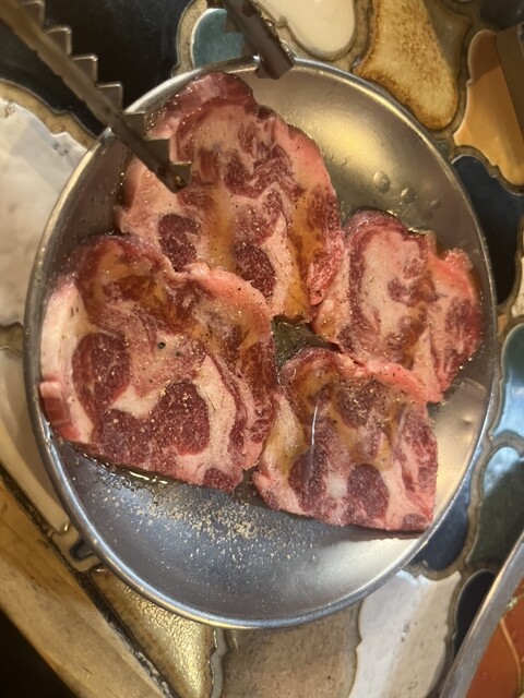 想像が追いつかない。どーゆー感じなのかと即注文。出てきたのがルイベのように美しい薄切りタン。そのままワサビでと勧めてもらいました。言われた通り忠実にいただくと…口溶け良き!出汁美味っ!ワサビ合う!タンってこういう食べ方もありなのねと大感動。お酒にも合うし飯にも合う♪