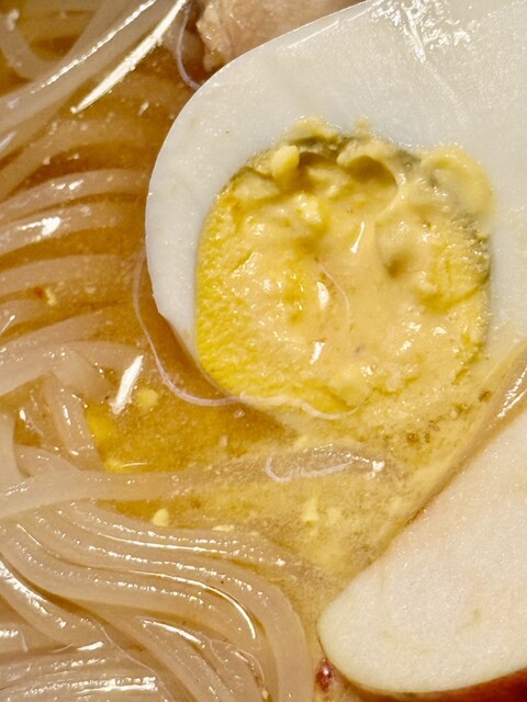 旨みが沁みてくる。茹で玉子の黄身だけを崩して、続けて、啜る。