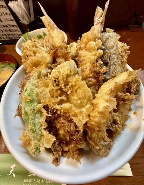 キレの良い天ぷらの味わい。てんこ盛りだ。