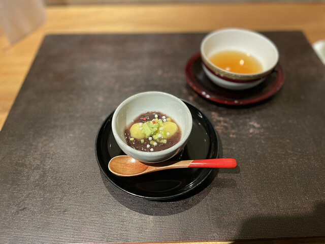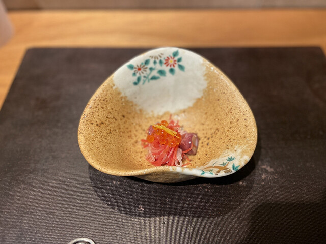 和の食材を使いお店独自のお料理を作り上げられています。1月に伺ったため寒ヒラメや毛蟹といった季節物を楽しめました。中でも驚いたのが、鰻とマンゴー、フォアグラを海苔で巻いて食べる料理。手で食べるのが難しいですが、パリパリの海苔との相性が良かったです。全て美味しくランチでしたがゆったり楽しめました。