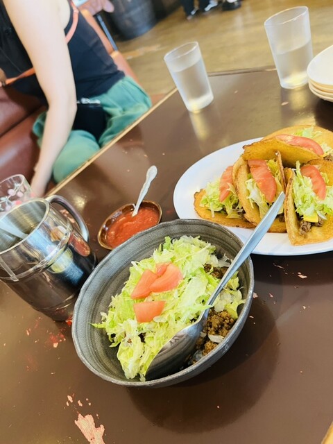 小ぶりだし、重たくないから何個でも食べられそうだし、タコライスも美味しかったから欲が出そうでしたが、タコス屋さん巡りをする予定だったのでがまんがまん。