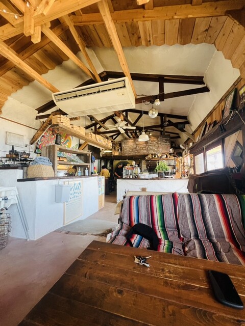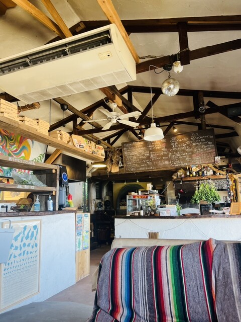 外にも席はありますし、店内には海を眺められる窓際席、ソファでひろびろゆったりできる席、いろいろな楽しみ方がありますりギターや小物の飾りがさりげなくておしゃれで、こだわりがたくさん詰まった素敵な空間でした^ ^海水浴に来てる人はもちろん、近隣の地元の方々からも愛されてる人気店♡