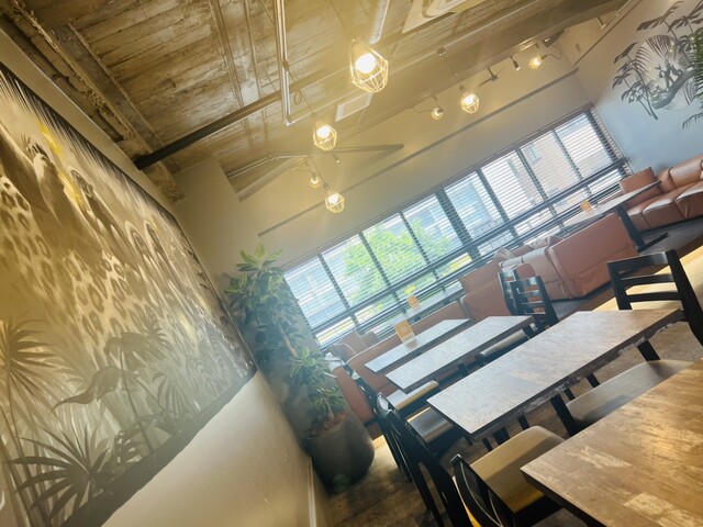 店内は光が差し込む大きな窓で明るくて、広々していて、ゆったり過ごせました^ ^充電もできるし、Wi-Fiもあるし、とっても居心地良いお店です!