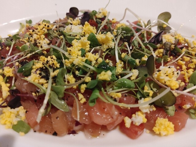 料理、お酒とも、とても美味しくいただけました、新しくできたばかりのお店で、大変綺麗です、商店街から階段を上がりますが、お店のドアを開ければ、スタッフさんが優しく迎えてくれます、接遇も大変丁寧で最高です、おひとりでも入りやすい雰囲気です、ありがとうございました