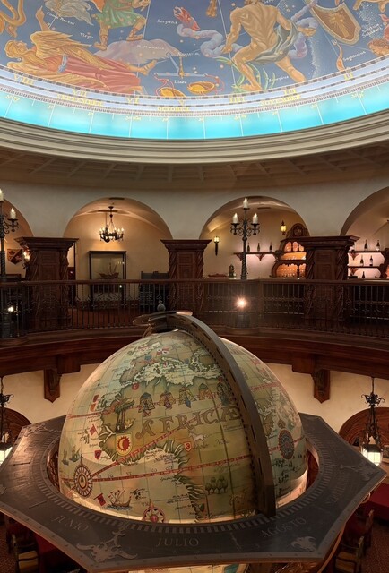 お店に入るとまず階段で下に降ります。降りた先は広い吹き抜けの空間で、真ん中に大きな地球儀があります。