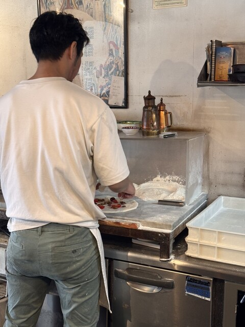 石窯の炎がゆらぎ、目の前で生地が伸ばされる。