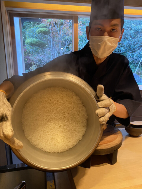 しめのごはんは、新米をはがまをつかってまきでたいているので、とってもおいしいんだよ。
