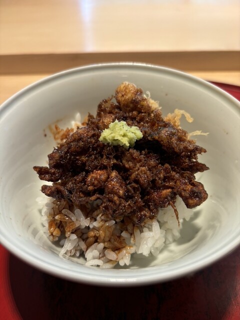 しめのご飯は、いつもは天茶か天ばらを頼むんだけど、成生さんに来て初めて天丼をたのんだよ。