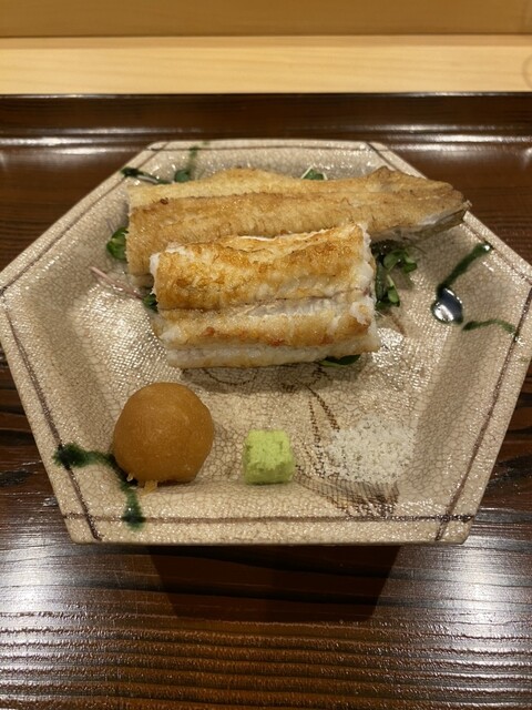 お刺身は、肉で言うシャトーブリアンの部位なんだって、1匹のハモから少ししか取れない、骨のない希少な部位で、なめらかで柔らかくて、とても美味しかった。