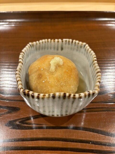 とらふぐでとった出汁と蕪とお水とおしょうゆだけでつくられたすり流しは、ふぐの味がギュッとつまって蕪の甘みとあって、とても美味しかった。