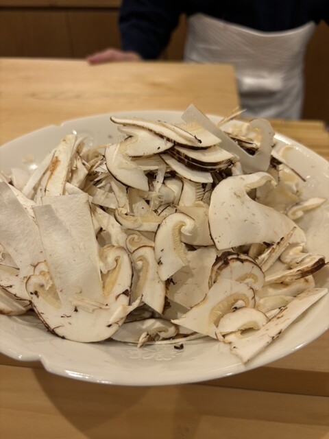 鰹節や昆布を使わないで、地鶏の胸肉と松茸のお出汁だけで炊いた、松茸と地鶏の炊き込みご飯が美味しかったなぁ。