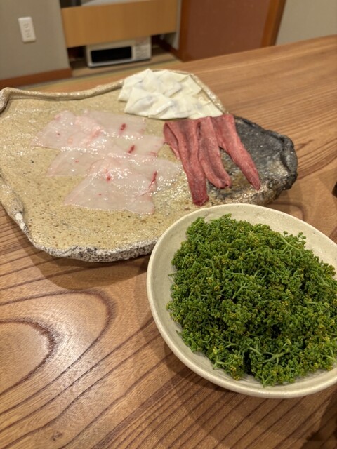お料理は、八寸のモロヘイヤのすり流し、黒い羊の