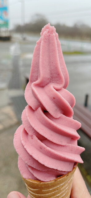 同じ館内にテイクアウトのバーガーを持ち込んでる姿を?ん?沖社長に聞くと10年以上前からチカラを入れていて実はこのバーガーを目当てに来られる方が多いと、、という事で急遽バーガーを。沖社長直々に配膳してくれて実食、コレは美味いわ、淡路タマネギに淡路牛甘味もあってペロリでした、流石に腹パン、園内にヤギとかの小動物がいるので餌やりツアーに笑、意外と楽しかったです。で小休憩したあといちごハウスへ、スタッフさんからの注意事項を聞き30分取り食べ放題すたーと、、びっくりしたのはハウス内の清潔感、ゴミとか食べかす?全くない、あとで社長で聞くと、担当スタッフのこだわりだそうです、さすがです、多分20粒くらいかな?実食は、取り立ての甘さは格別ですし行った人しかわからんかな?最後にクルマに乗り込もうとしたら駐車中の方が美味しそうにソフトクリームを、、、、んーどうしよう?おなかいっぱいやけど?で、注文?ん?買うんかい^_^はい、美味しく頂きました、