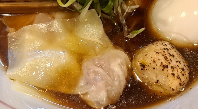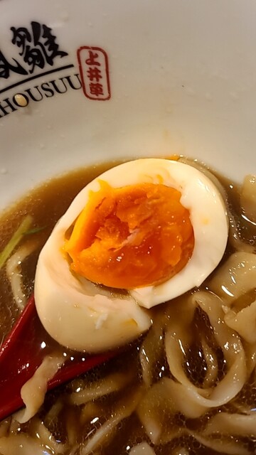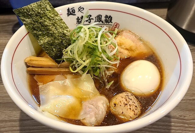 今日のラヲタ活動は、先日レビューした、西武新宿線、井荻の名店、麺壁九年さんの2ndブランドのお店が、隣の上井草に出来たとのこと~麺面壁九年さんも、メチャクチャ美味しかったですが、そこが元ですからね~間違いないでしょうwww 店名は、麟子鳳雛『りんしほうすうと読みます』さん 夜イチ1800過ぎの来店で、先客4名、後客2名で、夜なのに、お客さん来ますね~若きオーナーさんと、奥さんかなぁ茶髪の可愛い奥さん!新店なんで、店内がめちゃくちゃオシャレでキレイ!入った瞬間煮干しの香りが最高です『煮干しラーメンもあります』 高めのカウンターで、厨房も一段高い トイレに入ったところ、トイレの蓋が上がるマジかww 私がトイレから出てくると、丁度オーナーさんが菅野製麺の麺を茹でる前にキュッキュと両手を使って手揉みしてウェーブをかけてるのが見えました 注文後に一玉一玉麺を揉んでます いざ着丼!いやー凄いビジュアル!手打ちのウェーブのかかった極太ピロ麺の上に色々な具材が少しずつ乗ってます めちゃくちゃ具だくさんで見た目だけでまず、ワクワクします 女の子はめちゃくちゃ喜ぶなこれwww 口を近づけると、これまた濃口醤油らしい芳醇な香りと、醤油の甘味と酸味のバランスが絶妙で、出汁はブランド鶏の清湯ですね 素材は書いていませんが、匂いが有名地鶏で、山水、比内、名古屋、青森シャモのどれかで間違いないですね 最近の美味しい淡麗醤油は、鶏油メインのオイリーなスープと、オイリー控えめなのに別れますね~こちらは、どちらかというと、最近増えているオイル感控えめのラーメンと言えます 最近鶏油不足が深刻です 鶏油が香りつつも、オイリー感は控えめで、返しの醤油の芳醇な香りを全面に出すようなラーメンが増えてきましたね 麺は、説明不要の、多加水もみもみ極太ピロ麺~スープ吸わないのに、ウェーブのお陰で汁が持ち上がる、多加水なのにスープの持ち上がりが良いという、最近の傾向~また、ワンタン、餡が小さめですが!めちゃくちゃジューシーなんだ?このお肉は!もしかしたらですが、間違ってたらすいません、金華豚なのかなぁ…あまりにジューシー 鶏団子も鶏感があります チャーシューは、バラと超大判の低温調理肩ロース二枚どちらも間違いないです 煮卵コクありですね ここまでの完成度、予想を良い意味で裏切られましたね~ここまで美味しい醤油ラーメン、久しぶりでしたね シビレましたwww またお伺いします!
