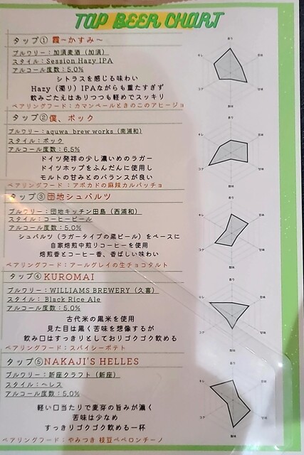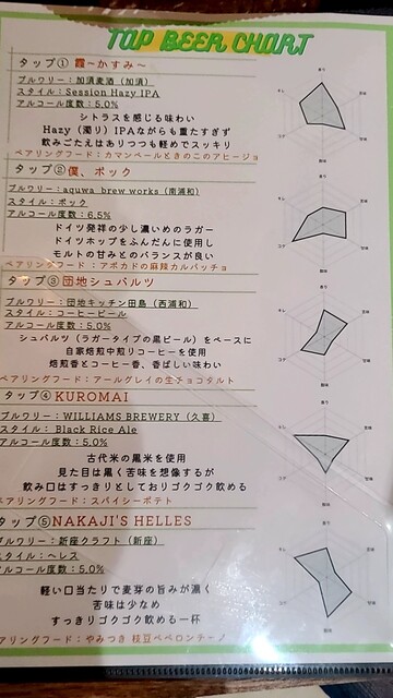 クラフトビールメニュー