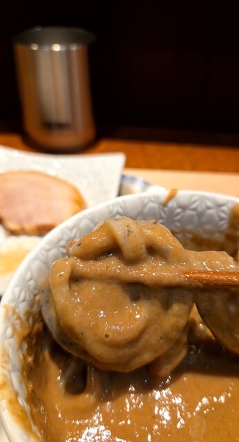 つけ汁…これはもう、つけ麺日本一である松戸の名店、とみ○さんに引けを取りません~この濃厚さといい、雑味のない豚骨つけ汁~