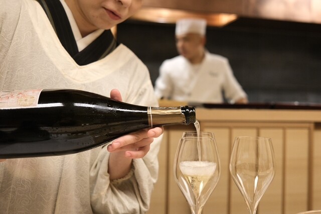 本日はワイン持ち込みで貸切です (マグナムの泡2本 白 白 赤 5本)