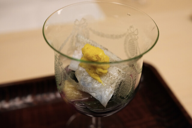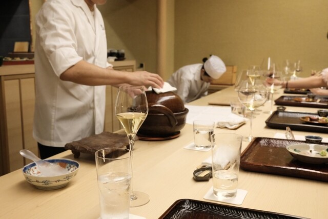 残念なことに一本シュラムスバーグのブラン・ド・ブランドが飲めない程度ではなかったけど若干ブショネっぽかったのが残念。アメリカを代表するといっても過言ではない泡ですね。調理場に目をやると、今日の食材の一つがカウンターに!