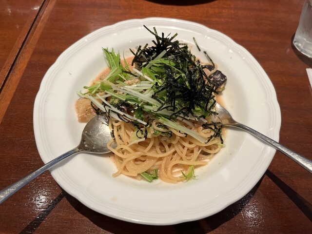 娘の発表会前に妻とランチ。最近は食べログで調べて妻と食事するのが楽しいwここのお店は何年か前にお客様と打ち合わせで使ったんだけどフードが美味しそうだったんで妻にオススメ。これが大正解!!!二人ともランチの明太子パスタにしたんだけど、水菜、ブロッコリー、なす、エビと具沢山。辛味が苦手な妻も美味しいと箸が進む。ベースが和風出汁かなあと思ったので出された粉チーズは合うのかなあと不安に思ってたけど逆でした!粉チーズを入れると濃厚になって味変としては完璧w
