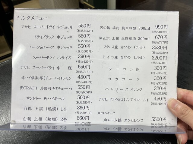 ドリンクメニュー