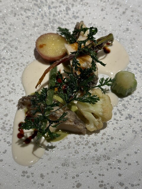 ディナーコース16,500円(平目(実山椒のゼリー 白いパウダーはオリーブオイル))