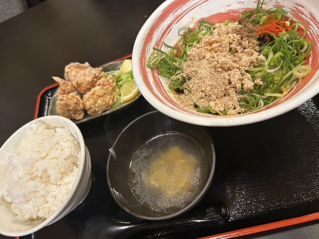「四川麻婆専門店 ホントのしあわせ」で唐揚げ付き汁なし担々麺をいただきました。