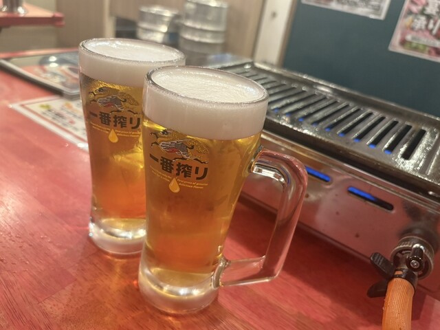 乾杯はキリン一番搾り(528円)からスタート。注文は卓上QRコードでスマートに行え、ストレスフリー。今回の目玉は、和牛A5ランクステーキ200g(通常3,980円)がなんと1,980円!見た目から圧巻で、繊細な霜降りと鮮やかなピンク色が食欲をそそります。ミディアムレアで焼き上げると、脂の甘みが口の中でとろけ、まさに至福の瞬間。このクオリティでこの価格は驚異的なコスパ。
