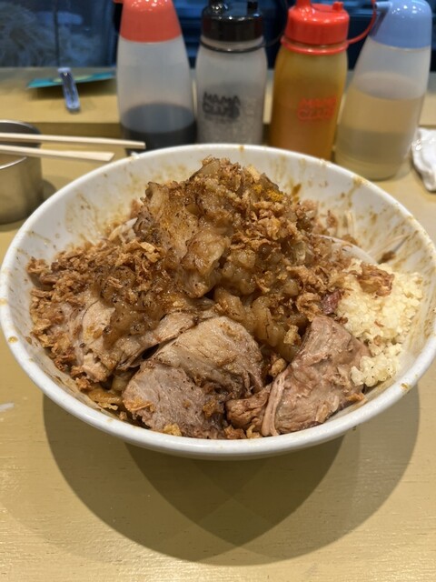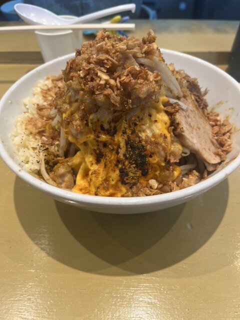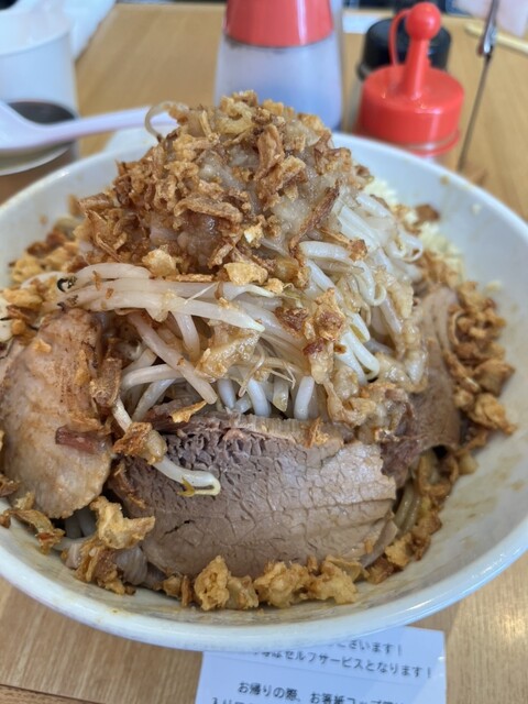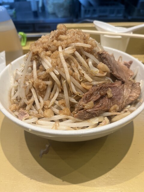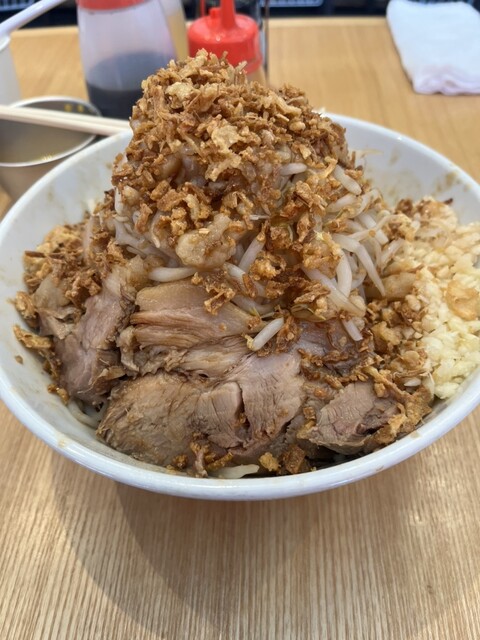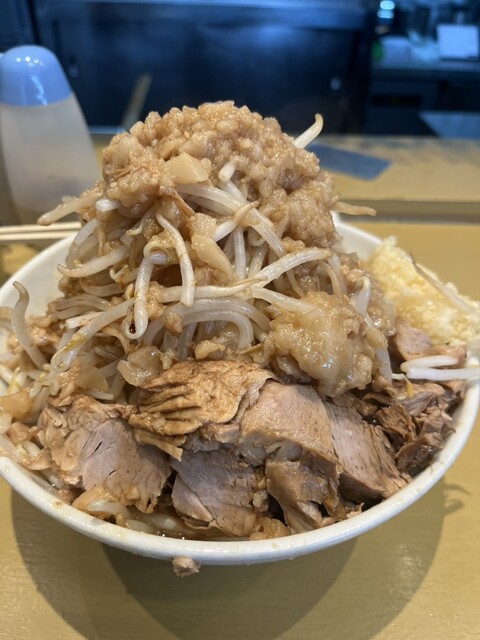 すぐ入店、今回はラーメン200gのニンニクアブラヤサイマシを注文。