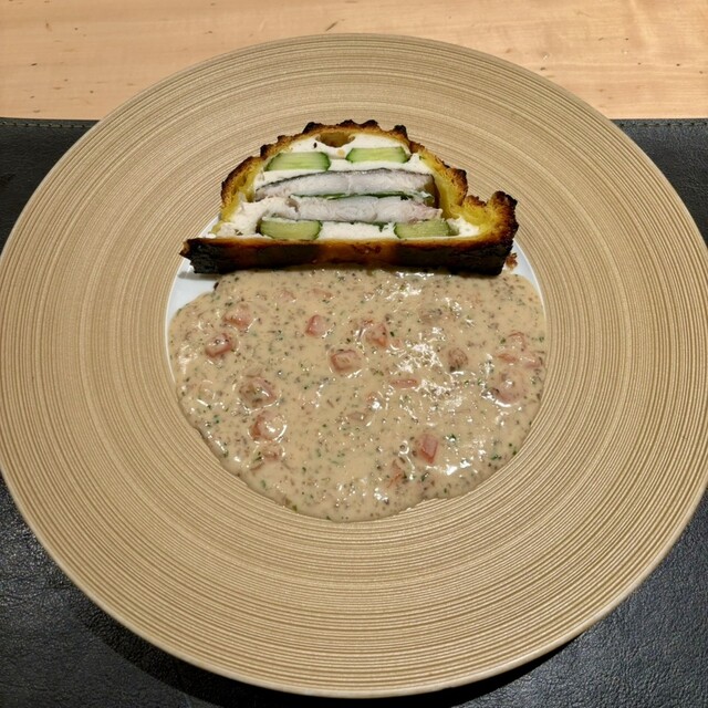 一度コンフィにした鮎をジャガイモの細切りをくるくると巻いてこんがり香ばしく揚げたお気に入りのメニュー、昨年も頂いて「今年も食べれたらいいな...」と期待していたのでまた頂けてとても嬉しい