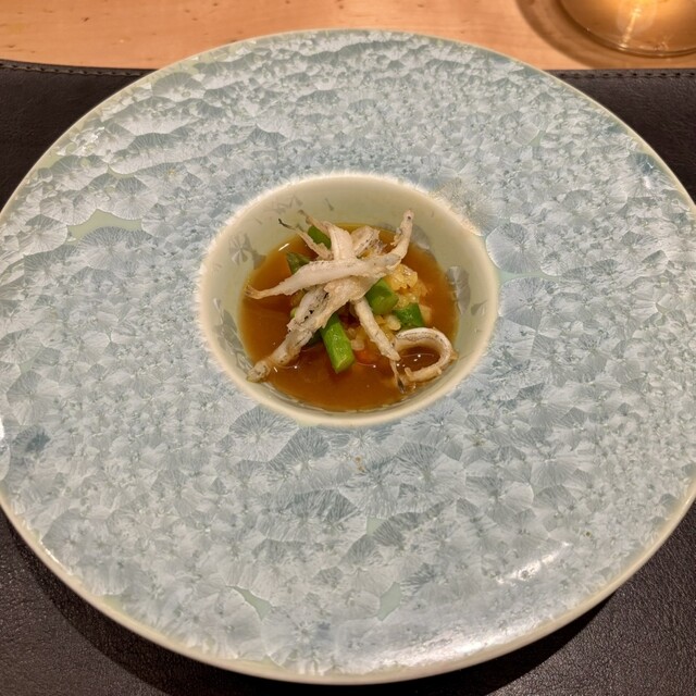 細切りジャガイモのザクザクの食感と香ばしさ、フワッフワの鮎、腸の苦味に山椒の風味、今期頂いた中で最も美味しく心に残る鮎でした