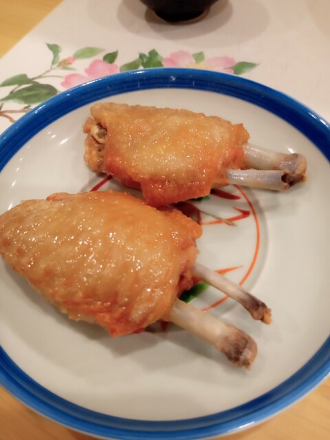 今日は海鮮尽くしだなぁと感じた瞬間、一本ずつの手羽先が。なんとも心の中を見透かしたタイミングです。この手羽先が美味いこと。パリうまジューです。
