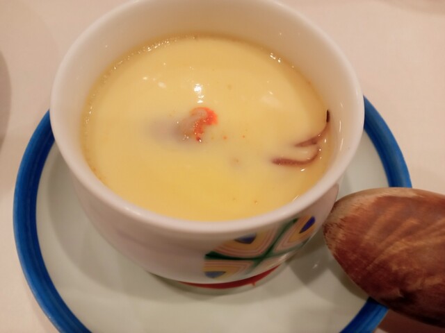 そして定番の茶碗蒸ですが内容は日替わり。この日は玉蜀黍。熱々うまうまで玉蜀黍の甘味も強い。