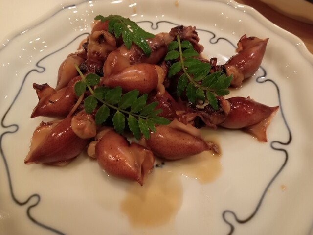 そこへホタルイカの醤油焼。醤油のこうばしさとホタルイカの苦味がお酒のアテに最高です。