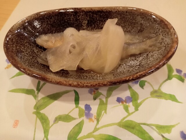 次のしめ鯖。炙りしめ鯖になっていて、炙り、酢、鯖の旨味が絶妙のバランス。思わず日本酒行きたくなります。