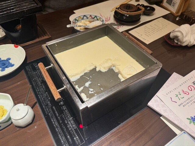 見た目はとても美しく、薄い湯葉が寄り添うように盛り付けられています。一口食べてみると、口の中でとろけるような食感が広がり、淡白ながらも大豆の豊かな風味がしっかりと感じられました。