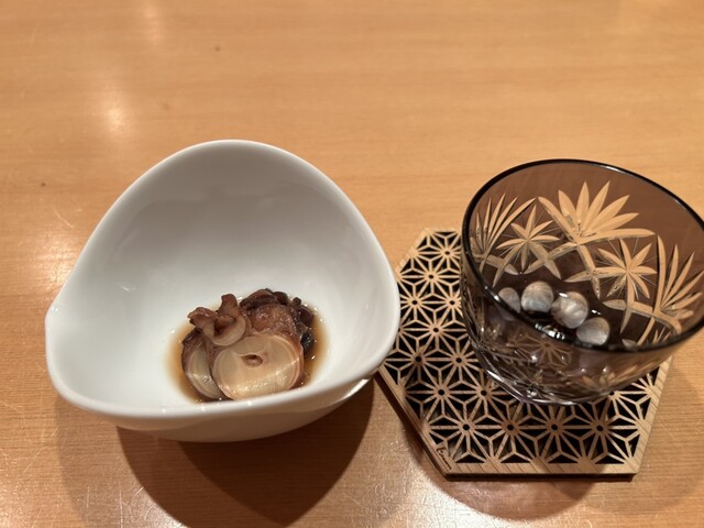 妻とお任せ+日本酒のペアリング@26K JPY/人(税サ込)を頂きました。