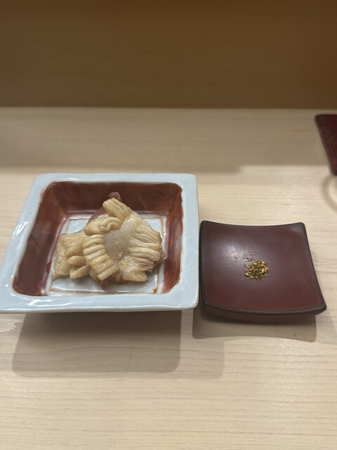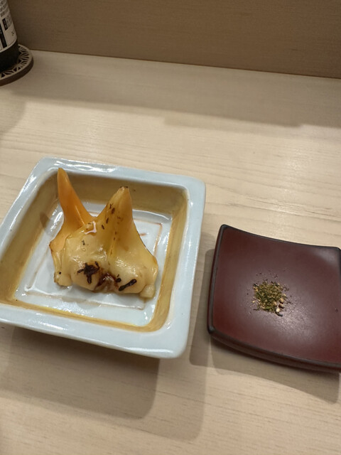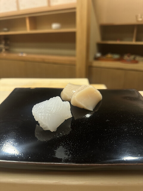 ホタテは醤油で、アオリイカは生姜醤油でいただく。