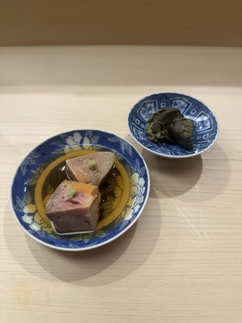 ・あん肝ときゅうりの奈良漬け 鮑の肝の味噌漬け 新政