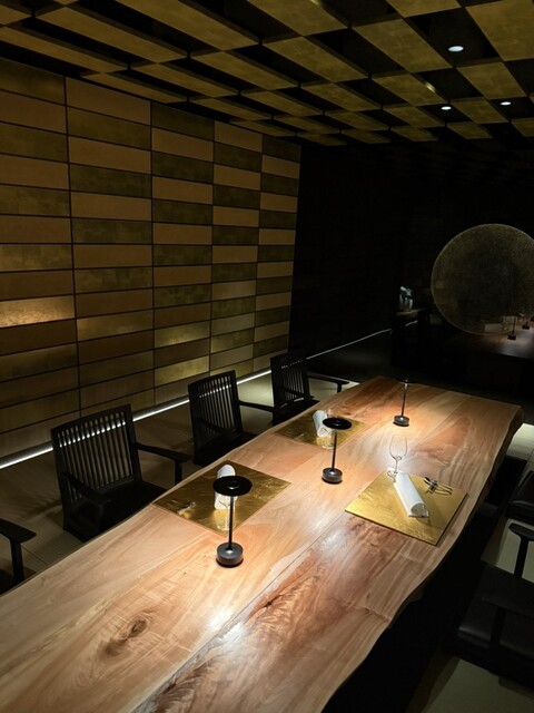 店内へと足を踏み入れた瞬間の**「衝撃」は忘れられません。建築家、橋本夕紀夫先生が手がけた空間は、日本の伝統美と現代的な豪華さが融合した、息をのむ美しさ。コンセプトが異なる4つの個室**は、その日の気分や接待の目的に合わせて選ぶことができ、隅々まで計算し尽くされたデザインに、すでに「非日常」へと誘われます。