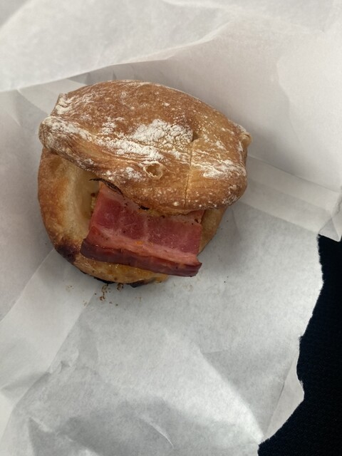 持ち帰って家で食べるつもりだったが、コンビニでコーヒーを買って 厚切りベーコンのパン を食べてしまった うわーー コーヒーで無くワインが飲みたい!